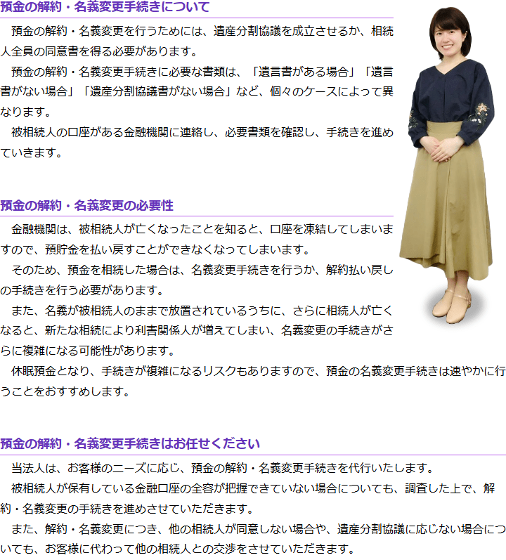 預金・貯金の解約・名義変更